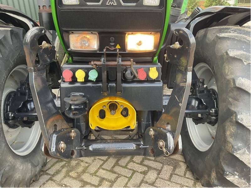 Deutz-Fahr Agrotron M640 del 2011, 8991 ore, Cabina, Aria condizionata, Cambio manuale + Powershift, Sedile pneumatico. Vernice verde metallizzata Anniversary Edition; Presa di forza 540 / 540E / 1000 / 1000E; Valvola senza pressione anteriore e posteriore; Attacco freno pneumatico; Assale anteriore con sospensioni idrauliche; Trasmettitore 27MC; Contaettari; Kit auto Parrot; Tettuccio panoramico + tendine parasole; Barra superiore; Timone di traino staccabile K80 (sfera di sterzo K50); Carrello cingolato; Doppio faro.