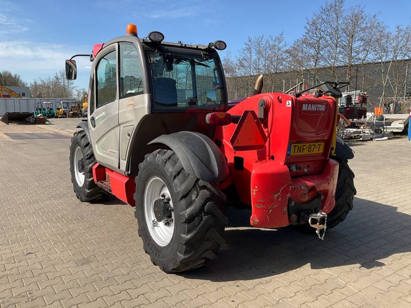 Manitou MLT840-115 del 2013, 7145 ore, sospensione del montante CCRV; attacco rapido idraulico; traslatore laterale; cambio Powershift a 5 rapporti; sterzo 4x4x4; trazione 4x4; finestrino elettrico; filtro antiparticolato; gancio di traino; comando a joystick; piastra portaforche; valvola freno rimorchio idraulica; ruote Alliance 460/70R24.